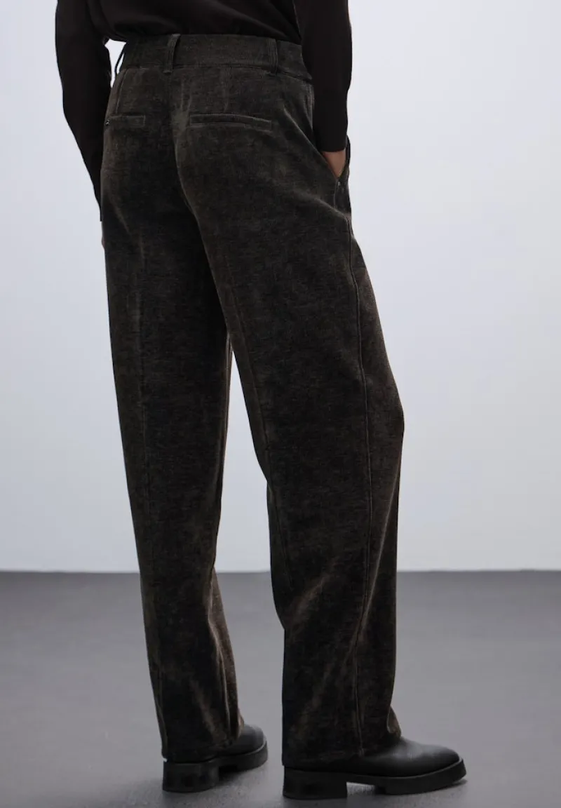 Diese elegante Cordhose für Damen von Street One überzeugt durch ihre weiche Chenille-Struktur und den lässigen Casual Fit. Mit einem elastischen Bund hinten bietet sie optimalen Komfort, während der High Waist und die geraden Beine eine moderne Silhouette schaffen. Ein perfekter Alltagsbegleiter, der Stil und Gemütlichkeit vereint.