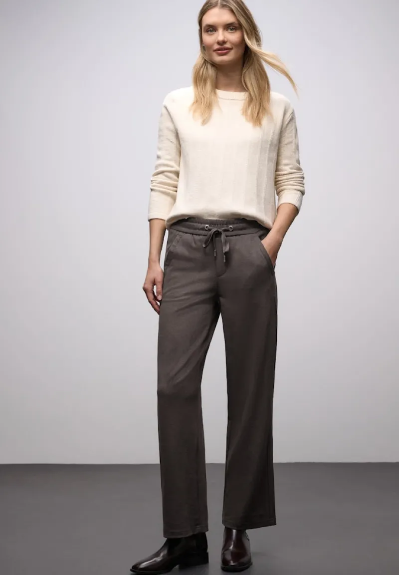 - Wie fällt die Hose aus? Die Straight Leg Hose bietet eine lässige Casual-Passform mit Mid Waist. Der elastische Bund mit Tunnelzug sorgt für Anpassungsmöglichkeiten — ideal, wenn du Komfort suchst.