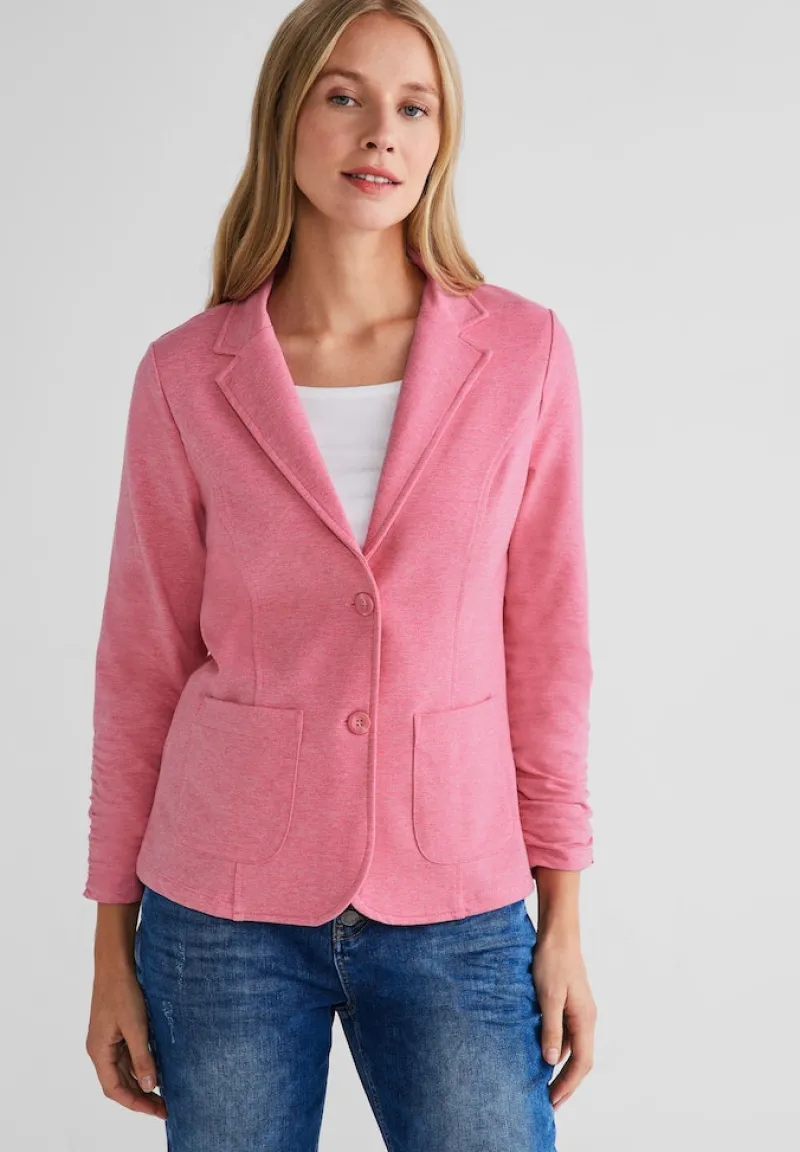 Entdecke den perfekten Mix aus Eleganz und Trendbewusstsein mit unserem Blazer mit Raffungen in woody rose. Dieses stilvolle Damenblazer ist ein absolutes Must-have für jede modebewusste Frau, die ihrem Outfit das gewisse Etwas verleihen möchte.