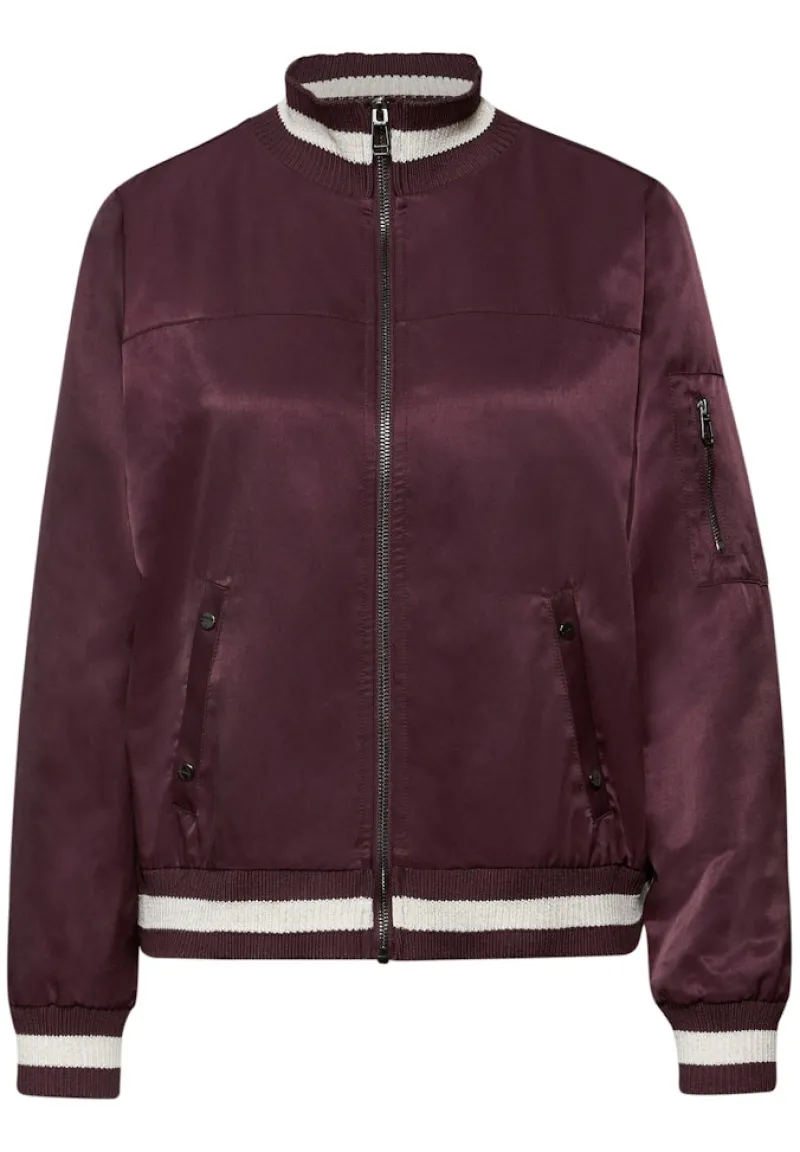 Dieser trendige Blouson mit Collegedetails bringt frischen Schwung in deine Garderobe! Mit seinem seidigen Glanz verleiht er jedem Outfit eine stilvolle Note – ob als Highlight über deinem Lieblingskleid oder kombiniert mit Jeans und Sneakern für den perfekten Casual Look. Zipperdetails am Ärmel und die dezenten seitlichen Taschen machen die Jacke nicht nur zum Hingucker, sondern auch absolut alltagspraktisch.
