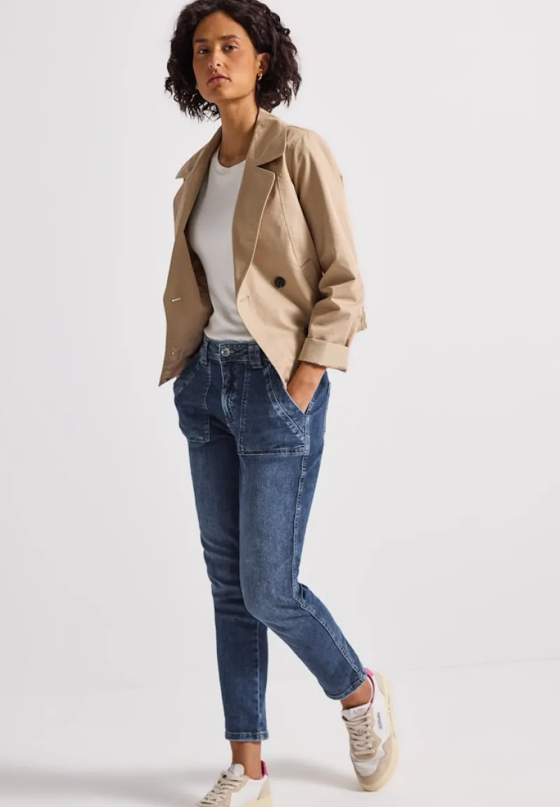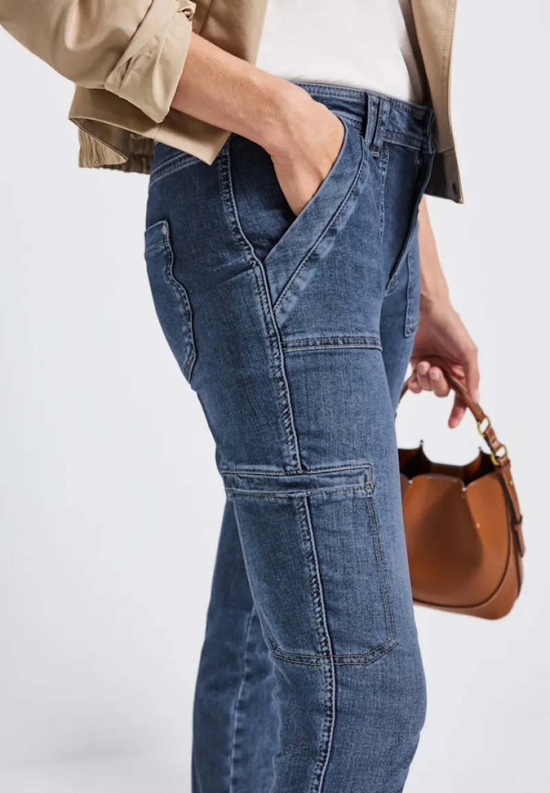 Diese Cargo Jeans im Loose Fit von Street One ist der perfekte Allrounder für deinen Alltag. Der moderne Slim Legs Schnitt und der Mid Waist sorgen für eine schmeichelhafte Passform, während der komfortable Loose Fit maximale Bewegungsfreiheit bietet.