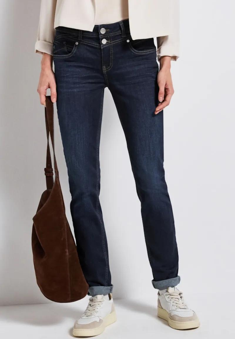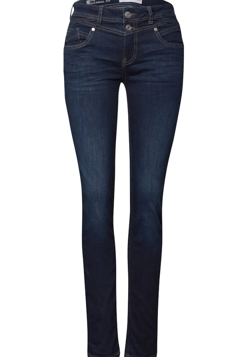 Entdecke die perfekte Kombination aus Stil und Komfort mit unserer Casual Fit Jeans in tiefem Indigo. Diese Jeans wurde speziell für Damen entworfen, die auf der Suche nach einer vielseitigen und dennoch figurschmeichelnden Hose sind.