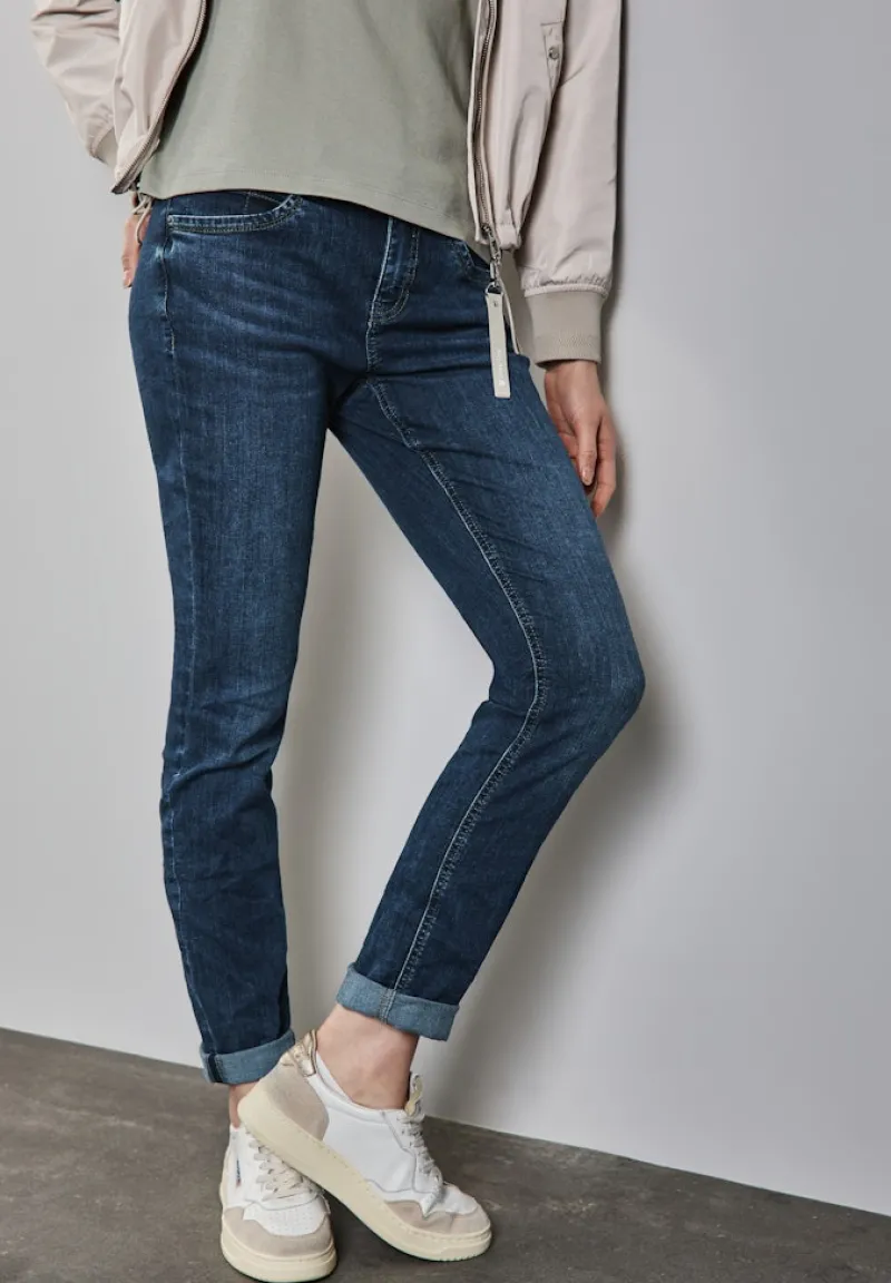 Entdecke die perfekte Kombination aus Komfort und Stil mit unserer Jeans im Casual Fit dark blue wash. Diese Damenjeans besticht durch ihre zeitlose dunkelblaue Denim-Waschung und den modernen Slim Legs Schnitt, der deine Silhouette elegant betont.