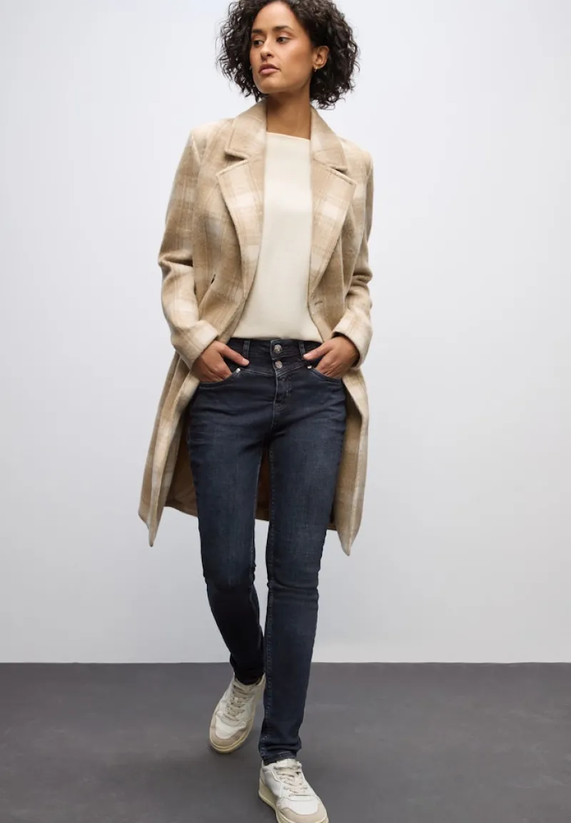 Die Slim Fit Jeans im modernen York-Style von Street One vereint zeitlose Silhouette und hohen Tragekomfort. Mit High Waist und schmalen Slim Legs formt sie deine Figur und bietet dank des soften Baumwollmixes mit Stretchanteil ein angenehmes, flexibles Gefühl den ganzen Tag. Trage die Jeans figurbetont oder wähle eine Nummer größer für einen lässigeren Look.