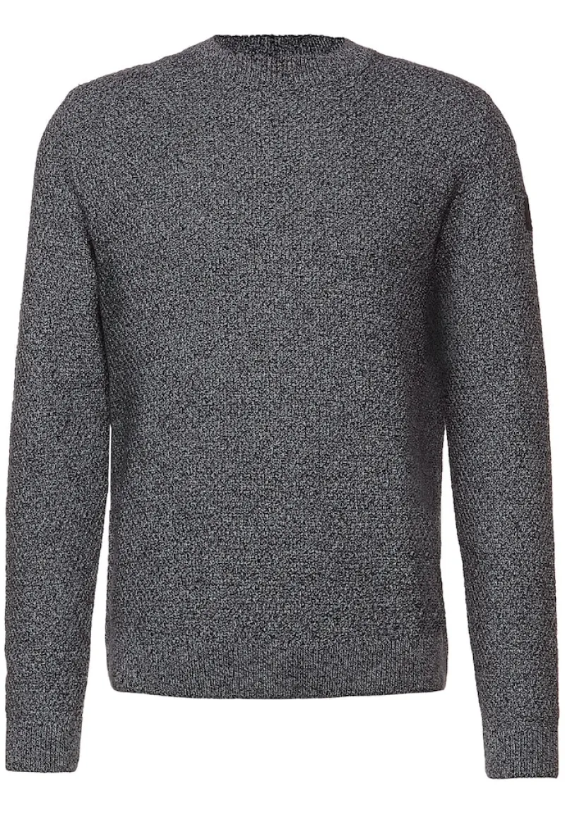 Dank des klassischen Schnitts und der elastischen Bündchen bietet der Mouliné Strickpullover eine optimale Passform. Er schmiegt sich angenehm an den Körper an, ohne einzuengen.