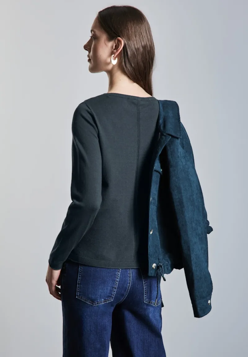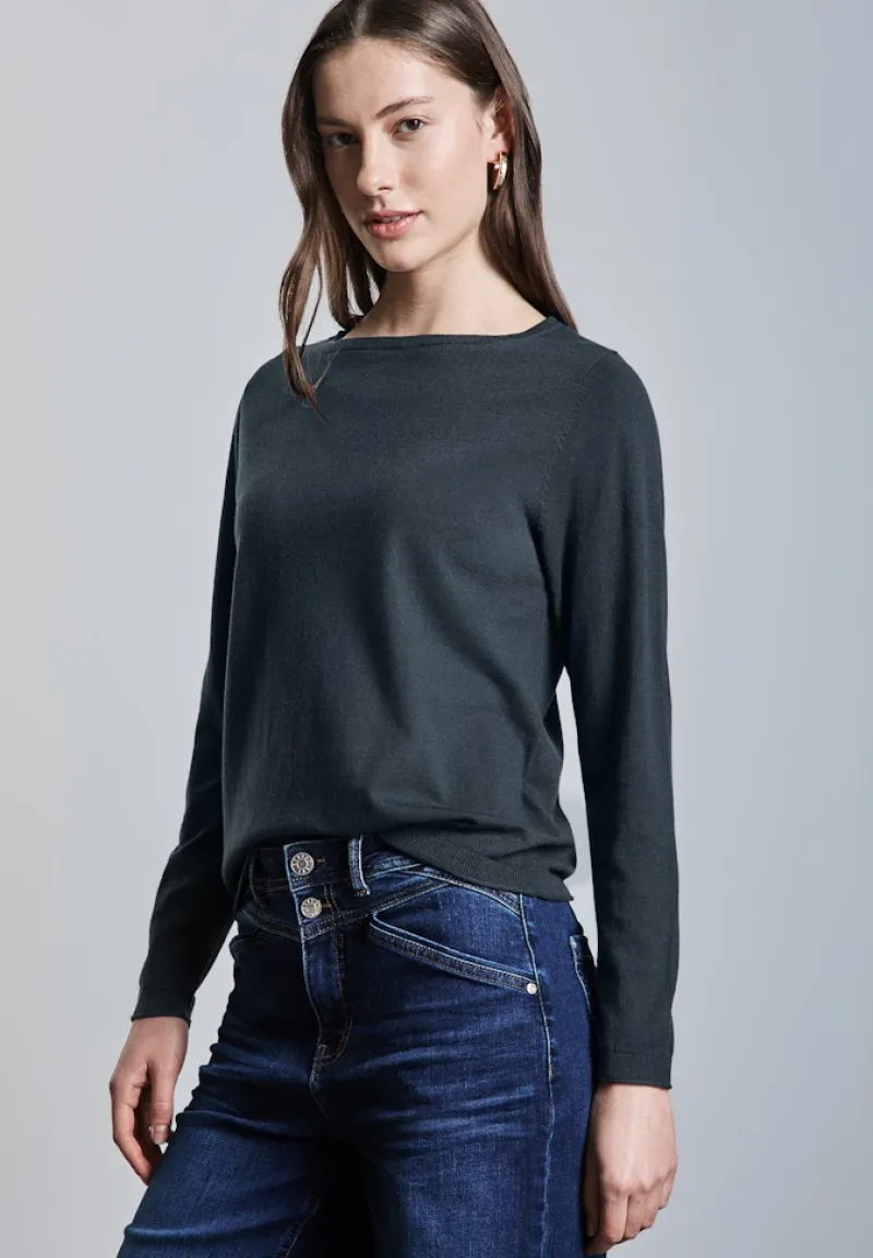 Entdecke den perfekten Begleiter für deine Alltagsgarderobe mit unserem Basic Pullover in der stilvollen Farbe Cool Vintage Green. Dieser vielseitige Pullover vereint Komfort und Stil und ist ein Muss für jede modebewusste Frau.