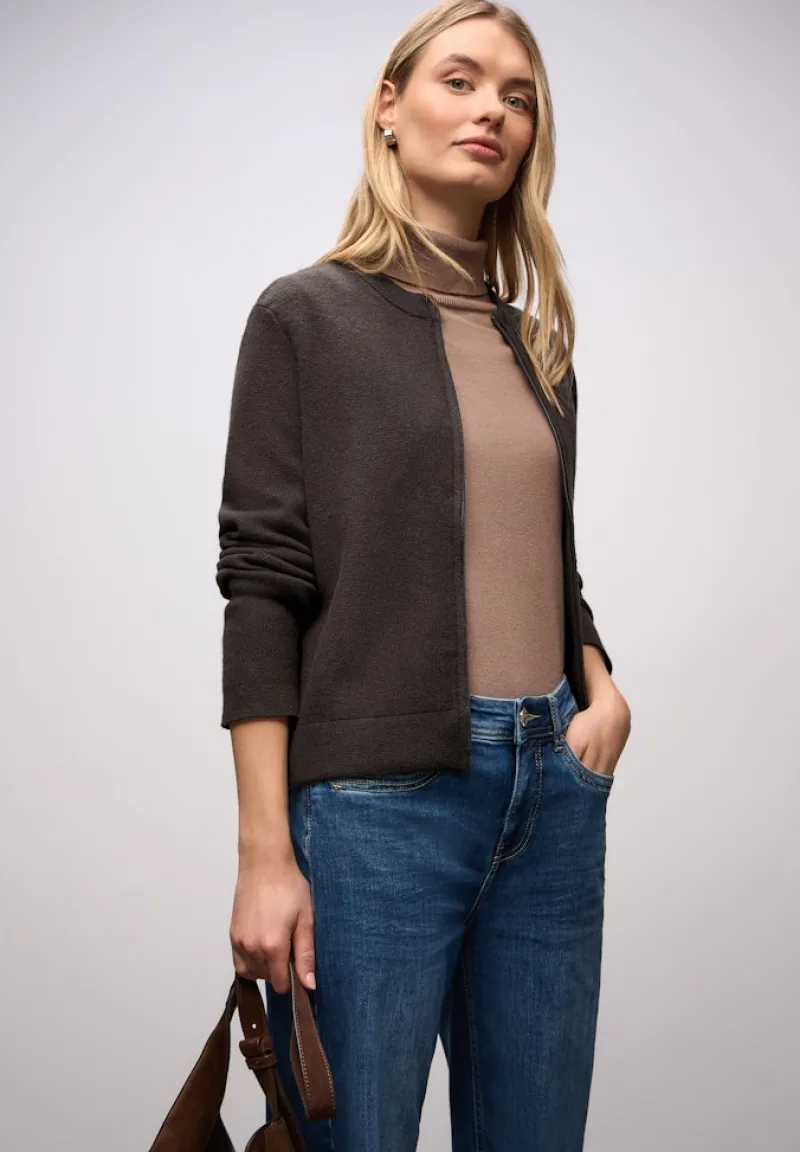 Der Kuschliger Cardigan ist die perfekte Verbindung aus Strick und Blouson-Flair – ein echtes Lieblingsstück für deinen Casual-Look. Dieses Modell von Street One für Damen überzeugt mit softem Tragegefühl, Rundhalsausschnitt, praktischem Reißverschluss und einem legeren Schnitt, der bequem sitzt und vielseitig kombinierbar ist. Die Strickjacke im Blouson-Look ist ideal für entspannte Alltagsoutfits, Layering und leichte Übergangszeiten.