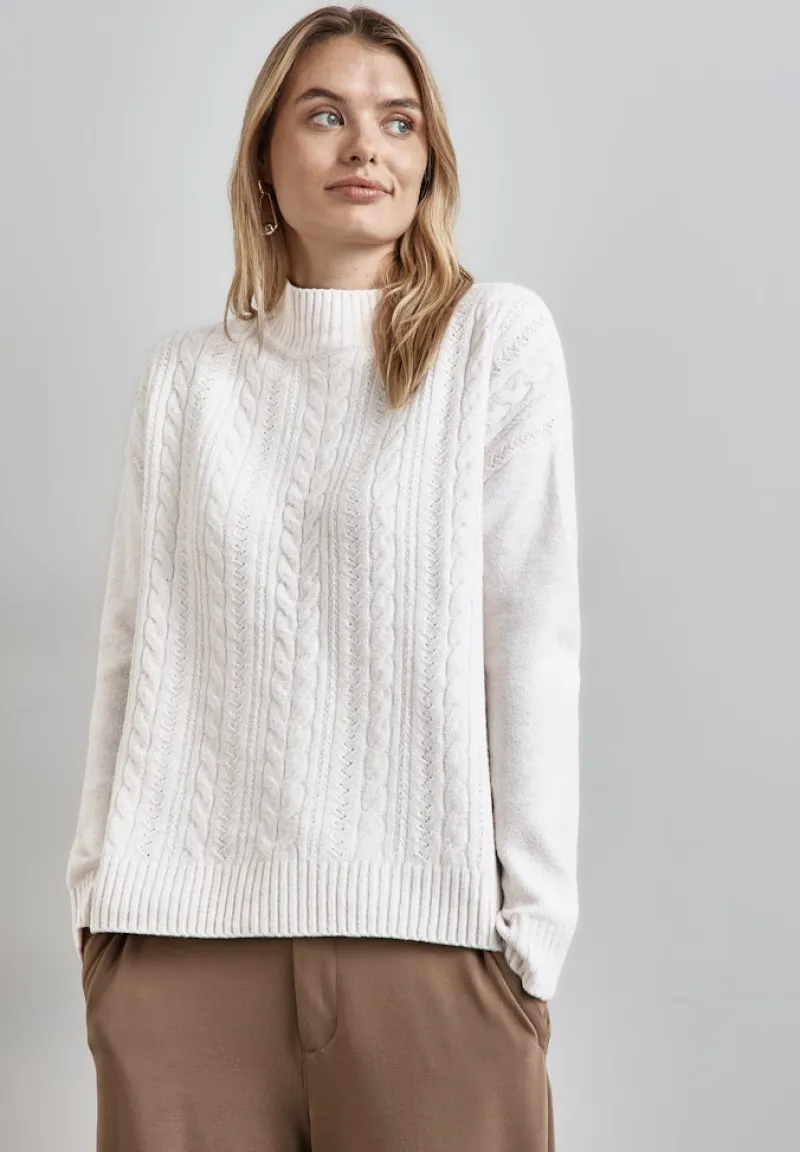 Entdecke unseren eleganten Pullover mit Strickmuster, der nicht nur für kuschelige Wärme an kalten Tagen sorgt, sondern auch deinem Outfit eine stilvolle Note verleiht. Das raffinierte Strickdesign und der moderne Schnitt machen diesen Pullover zu einem unverzichtbaren Kleidungsstück in deinem Kleiderschrank.