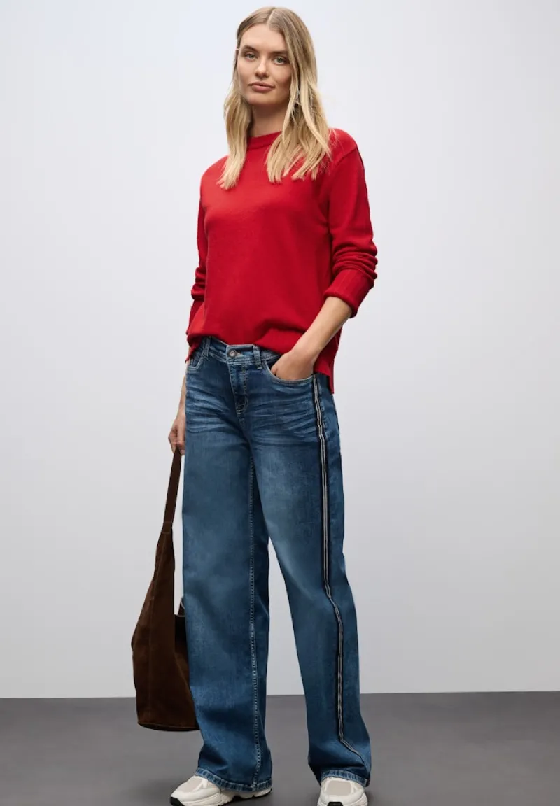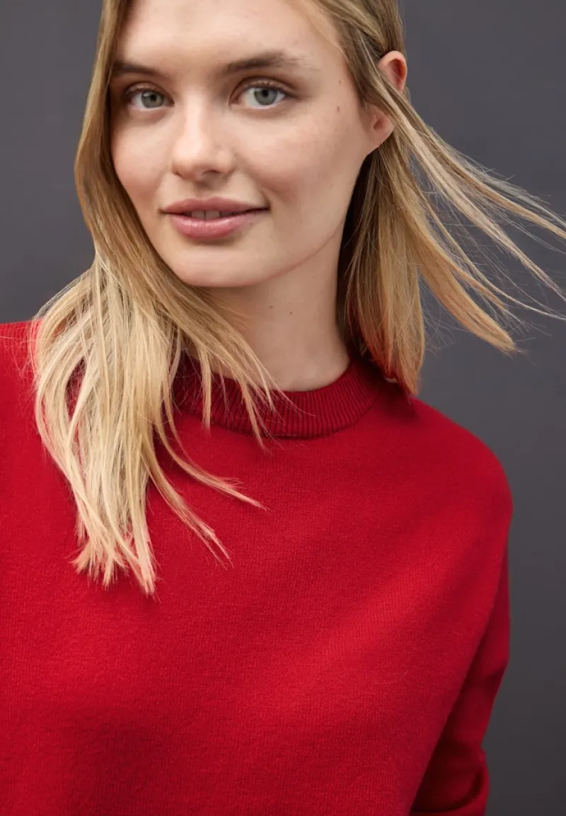 Mit seinem klassischen Rundhalsausschnitt und den seitlichen Schlitzen vereint dieser Pullover Eleganz und Funktionalität. Er ist die perfekte Ergänzung für jede Garderobe und lässt sich mühelos mit Jeans, Röcken oder eleganten Hosen kombinieren.