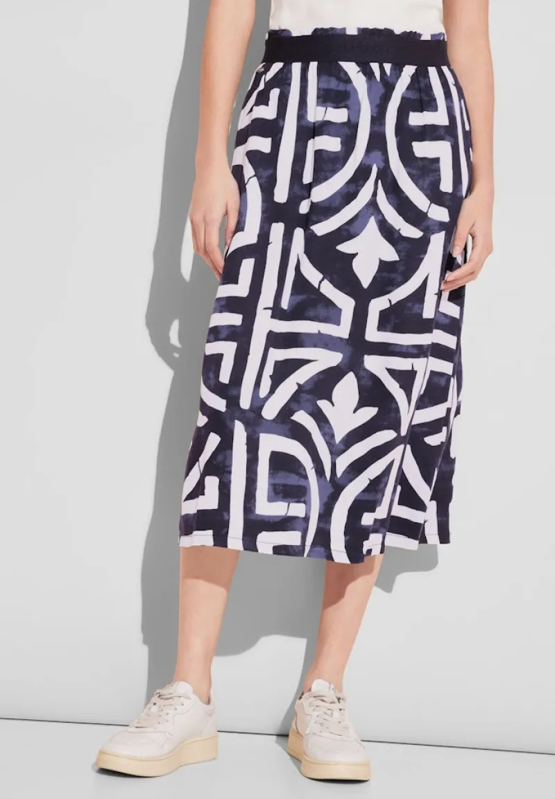 Mit seinem elastischen Bund und dem sorgfältig geschnittenen Design liegt der Print Rock deep blue perfekt auf deiner Figur und bietet den ganzen Tag über hohen Tragekomfort. Die vielseitige Passform sorgt dafür, dass sich der Rock auch bei wechselnden Temperaturen wohl anfühlt.