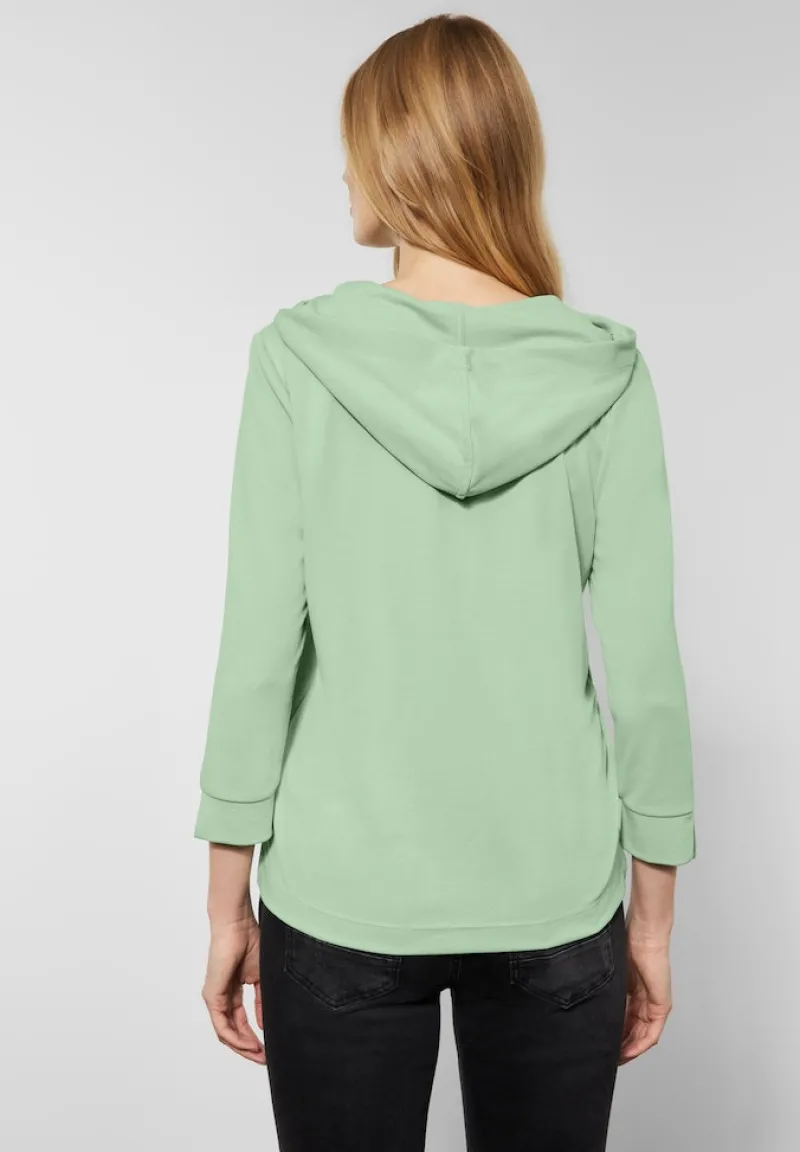 Das Kapuzenshirt überzeugt mit seiner zeitlosen Seidenoptik und lässt sich vielseitig kombinieren. Ob zu Jeans, Röcken oder Shorts – dieses Shirt ist immer die richtige Wahl. Es passt perfekt zu lässigen Tagesoutfits ebenso wie zu eleganteren Ensembles.