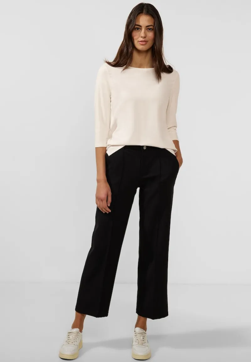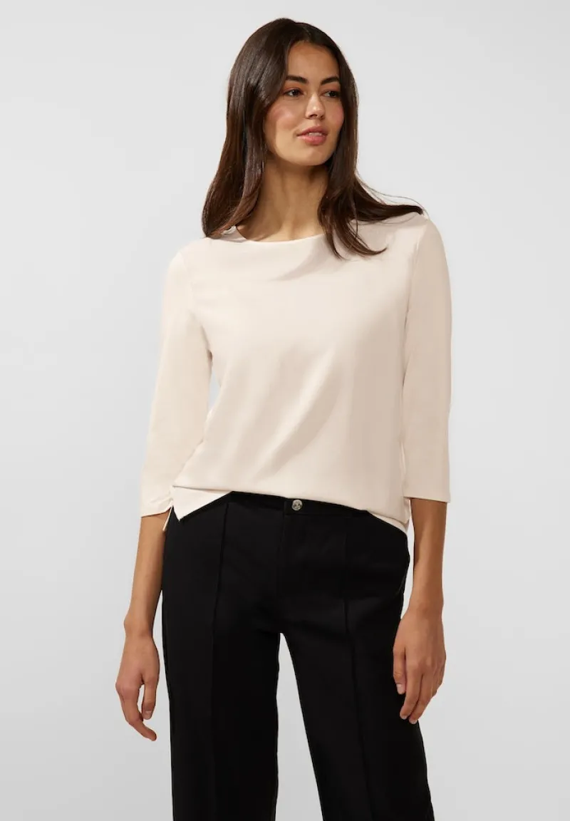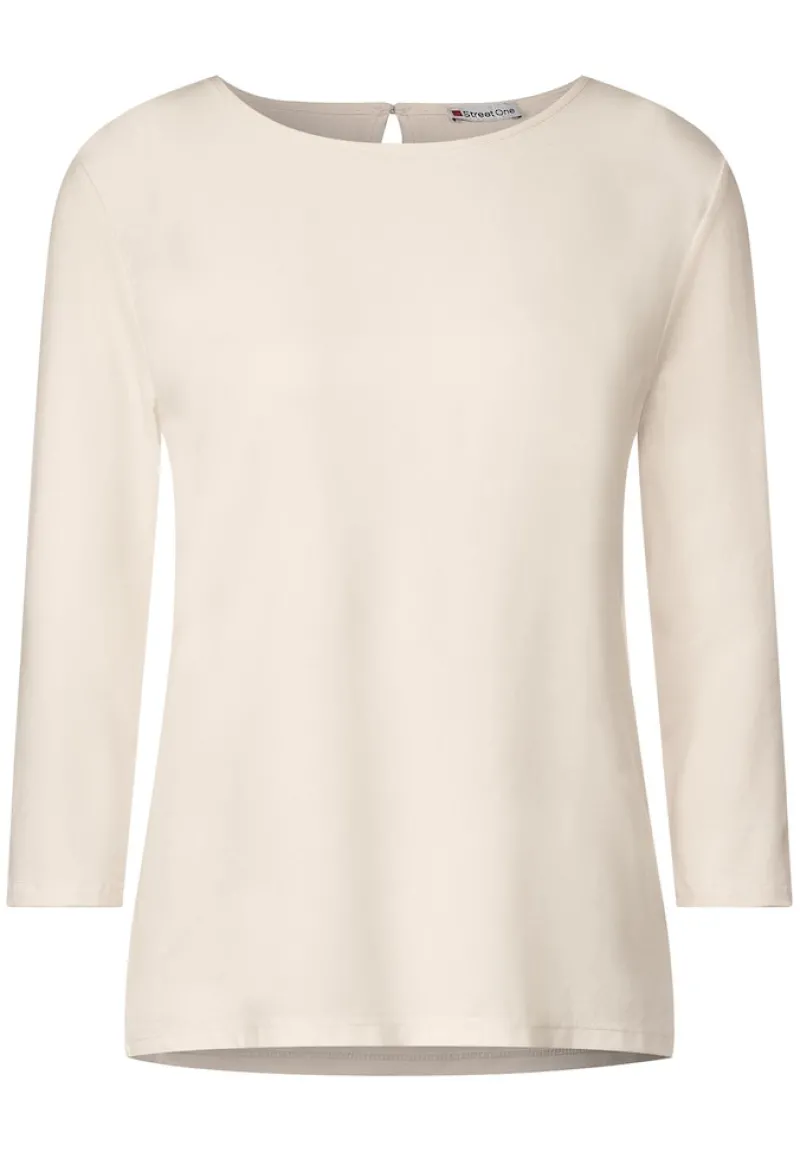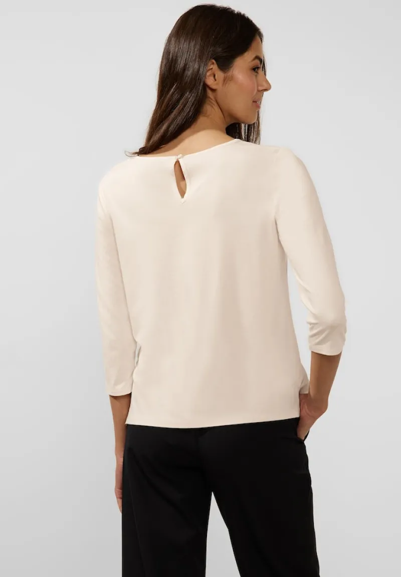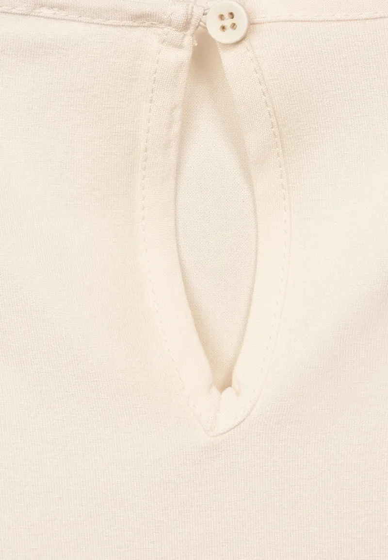 Entdecke das Materialmix Basic Shirt, das perfekte Gleichgewicht zwischen Chic und Bequemlichkeit. Mit seinen 3/4-Ärmeln und dem eleganten Rundhalsausschnitt bietet dieses Shirt einen modernen Look, der sich mühelos in deine Alltagsgarderobe integrieren lässt. Das dezente Schlitz-Detail mit Knopf im Nacken verleiht dem Shirt eine raffinierte Note und sorgt für zusätzliche Bewegungsfreiheit.