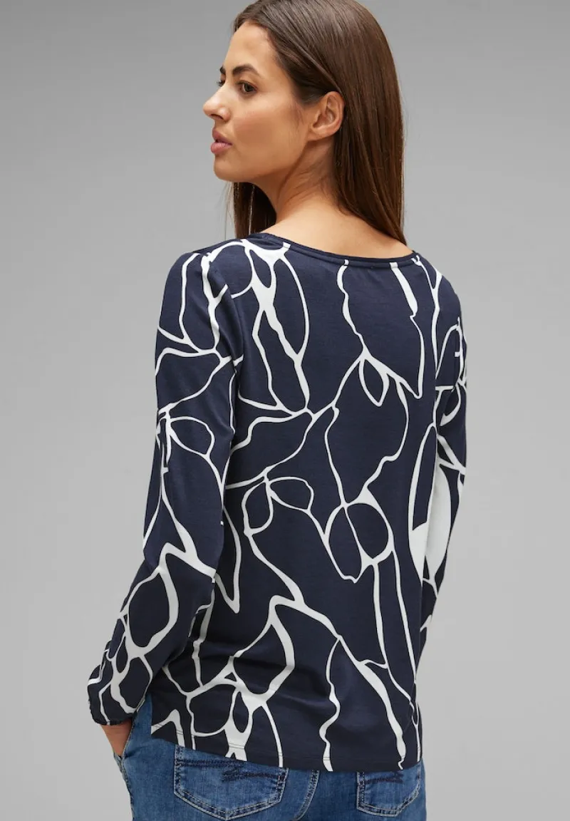 Das Printshirt im Materialmix deep blue lässt sich vielfältig kombinieren und eignet sich gleichermaßen für den Alltag wie für besondere Anlässe. Ob mit Jeans, Röcken oder Shorts – dieses Shirt verleiht jedem Outfit eine trendige und feminine Note.