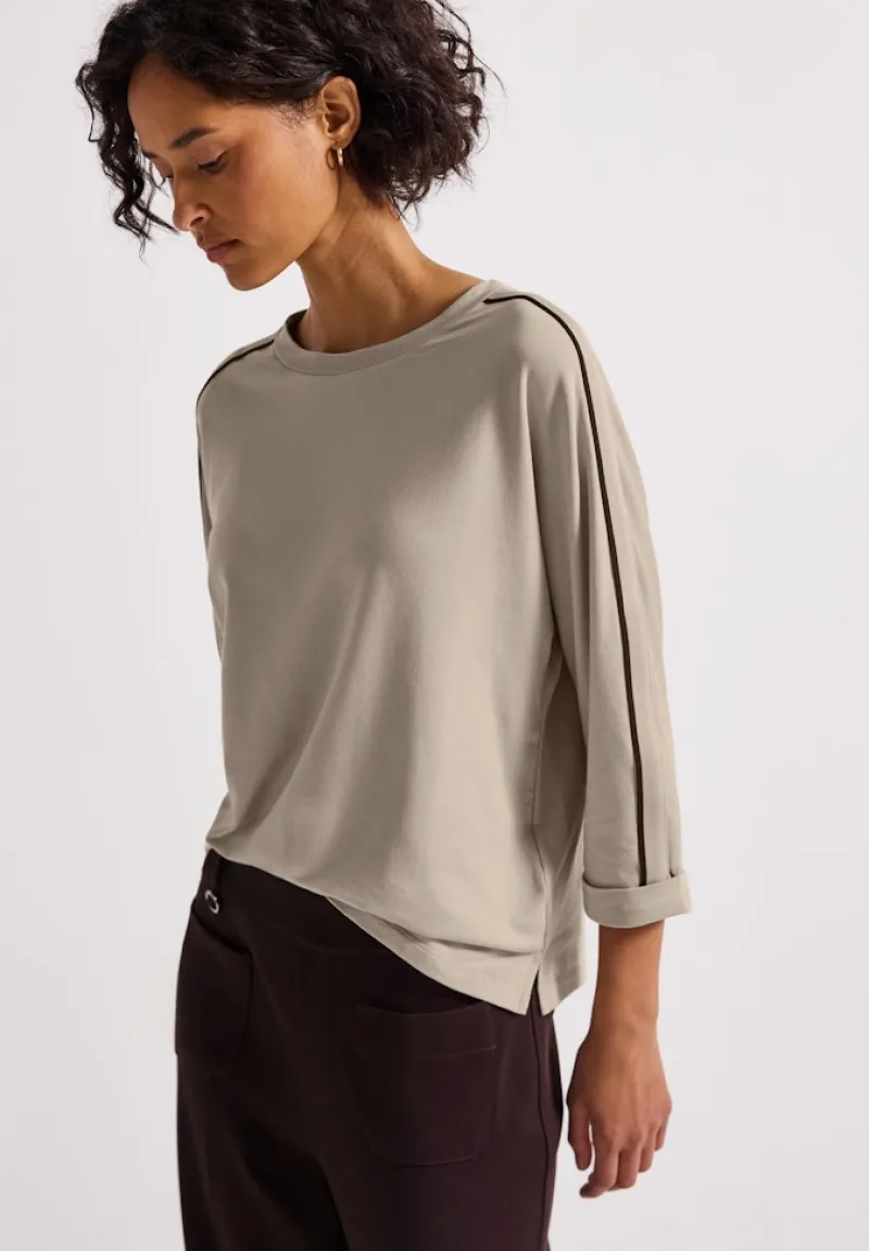 Unser Shirt mit Galonstreifen morning beige ist die perfekte Wahl für moderne Frauen, die Wert auf Stil und Komfort legen. Die Kombination aus hochwertigen Materialien und durchdachtem Design macht es zu einem unverzichtbaren Teil deiner Garderobe.