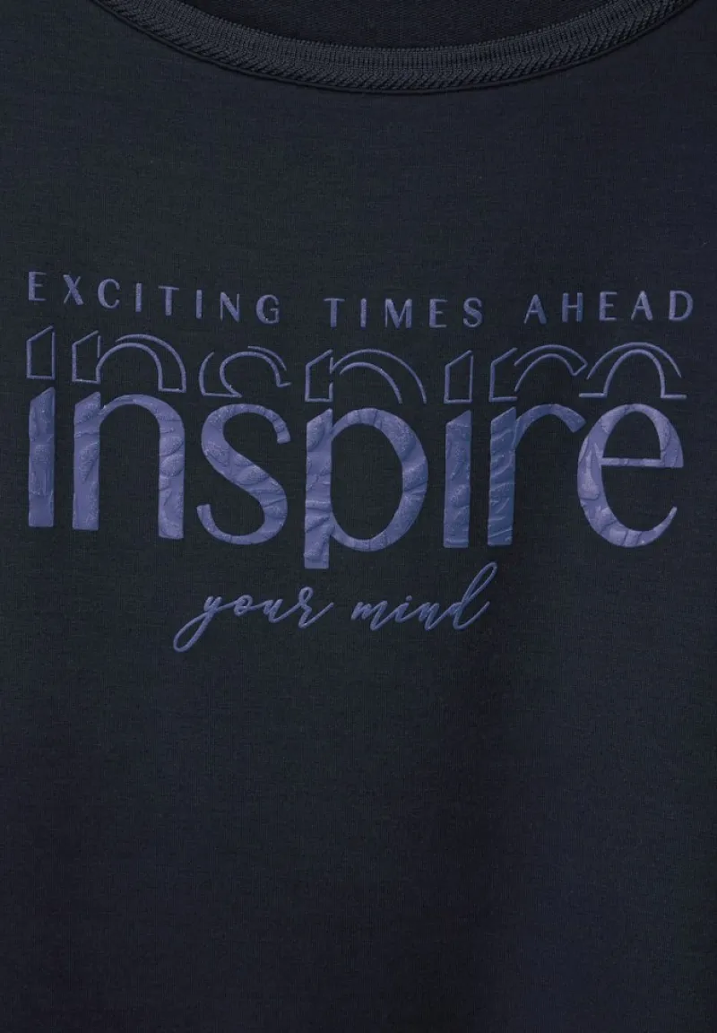 Das Shirt mit Schimmer-Wording überzeugt durch sein zeitloses und dennoch modernes Design: