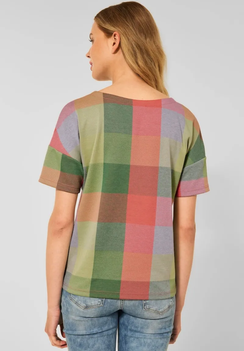 Dieses T-Shirt beeindruckt mit seinem einzigartigen Karodessin und dem femininen Rundhalsausschnitt. Die sommerlichen Farben verleihen deinem Outfit eine frische und lebendige Note, die dich von der Masse abhebt.