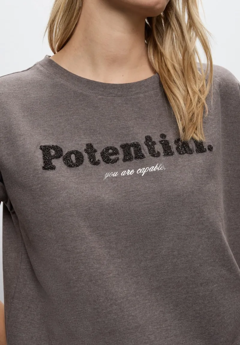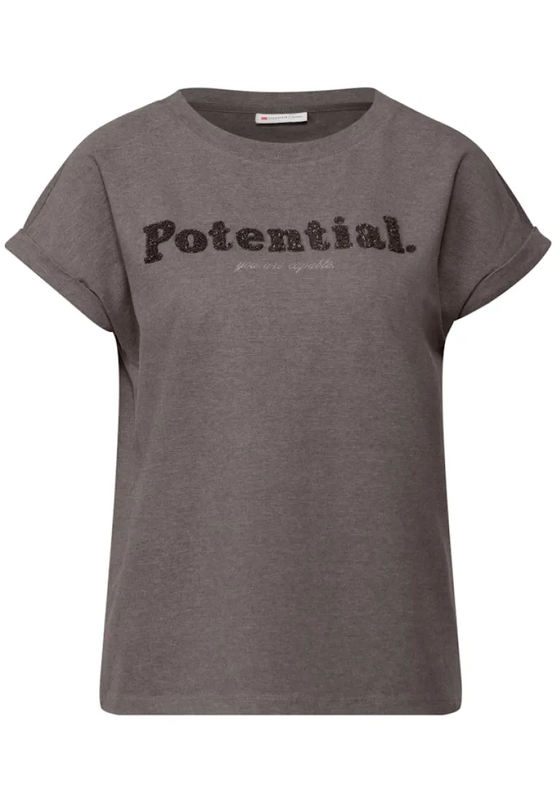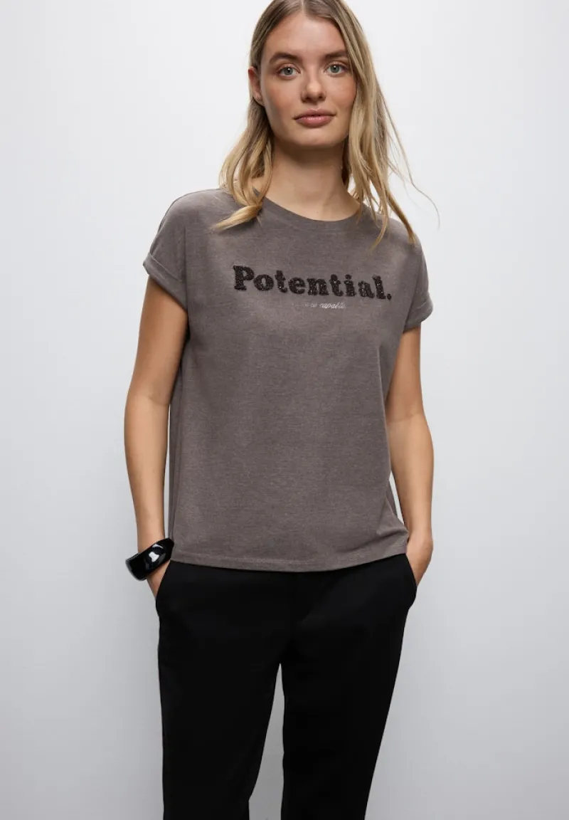 T-Shirt mit Bouclé Wording dark nomad brown mel