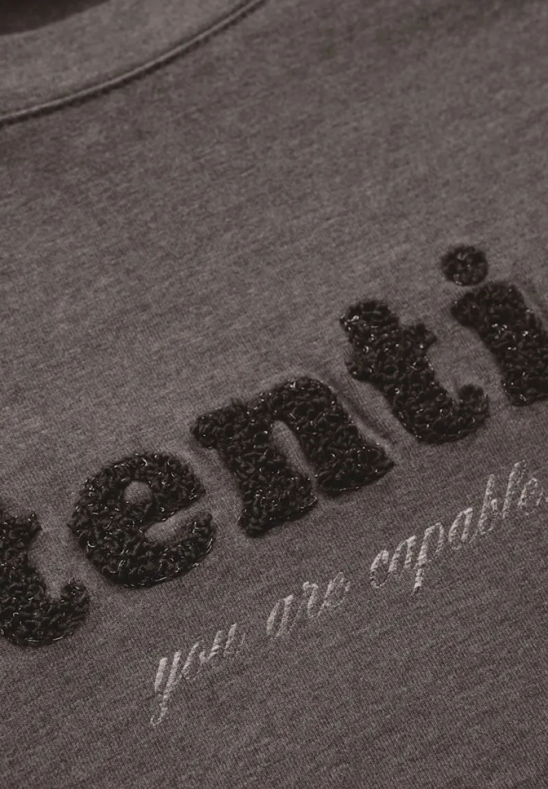 Mit seinem modischen Bouclé Wording und den Dropped Shoulders setzt dieses T-Shirt ein klares Statement. Es kombiniert trendige Elemente mit hohem Tragekomfort und ist somit das perfekte Kleidungsstück für modebewusste Damen.