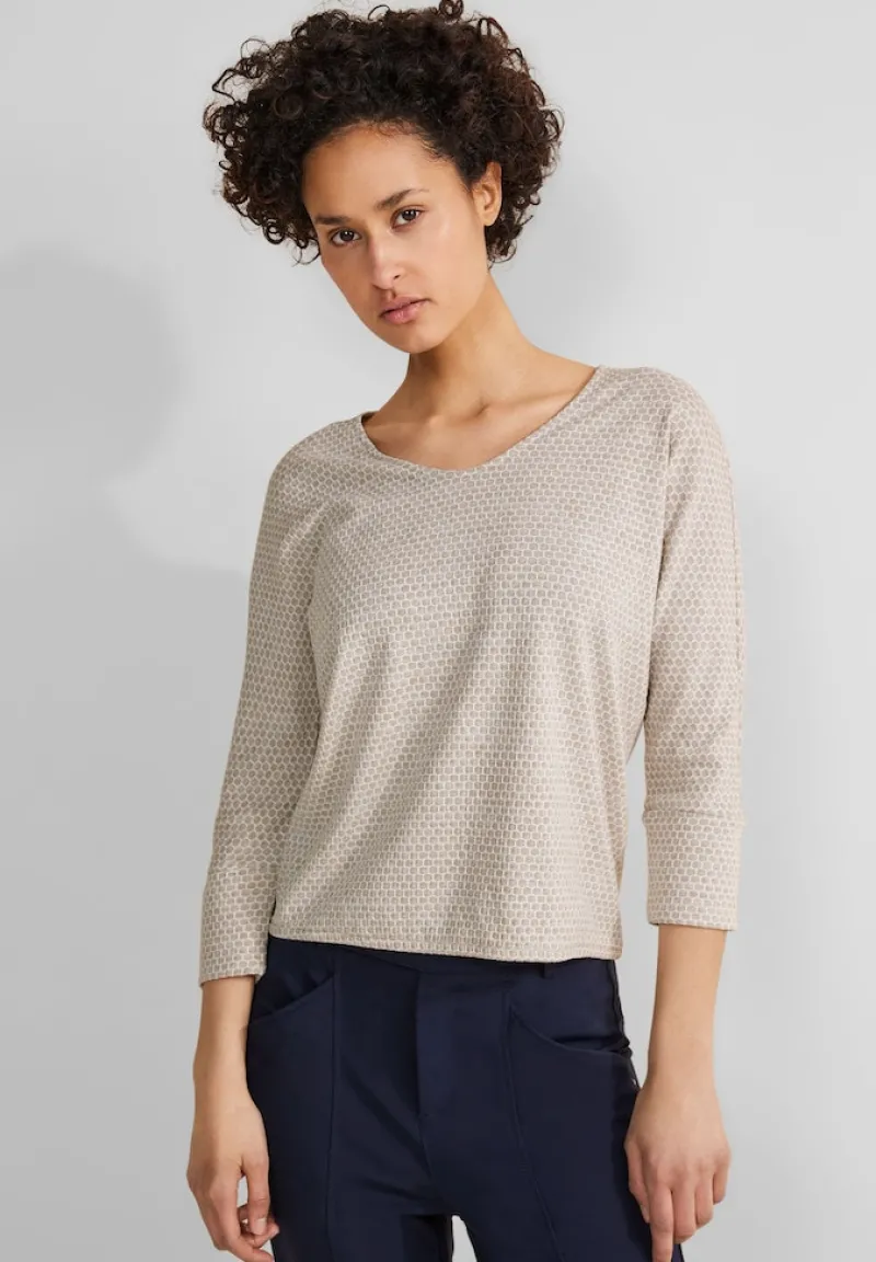 Mit seinem zeitlosen und vielseitigen Design lässt sich das V-Ausschnitt Shirt spring sand melange mühelos zu verschiedenen Outfits kombinieren. Ob lässig zur Jeans oder elegant zur Stoffhose – dieses Shirt ist immer die richtige Wahl.