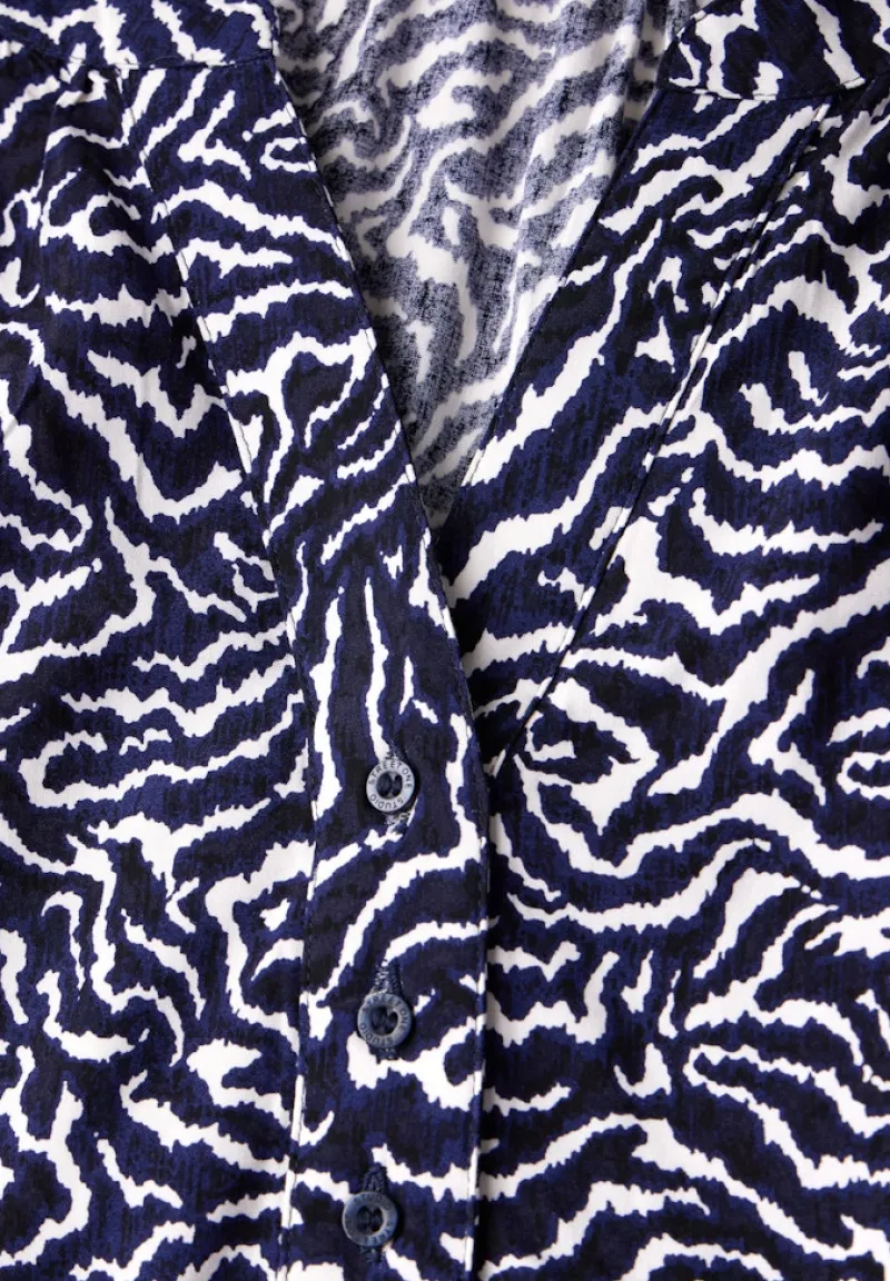 Entdecke unsere stilvolle bedruckte Bluse, die deinem Outfit das gewisse Etwas verleiht. Mit ihrem modernen Schnitt und dem einzigartigen grafischen Muster ist diese Bluse ein vielseitiges Must-have für jede Garderobe.