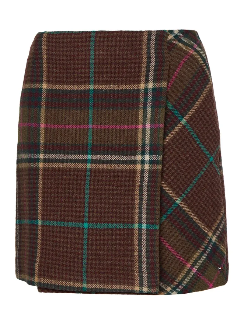 Wool Check Wrap Short Skirt