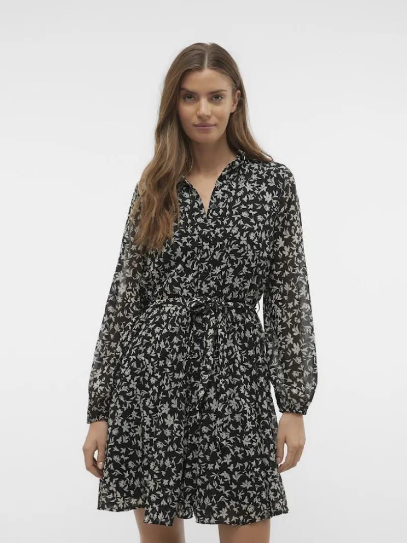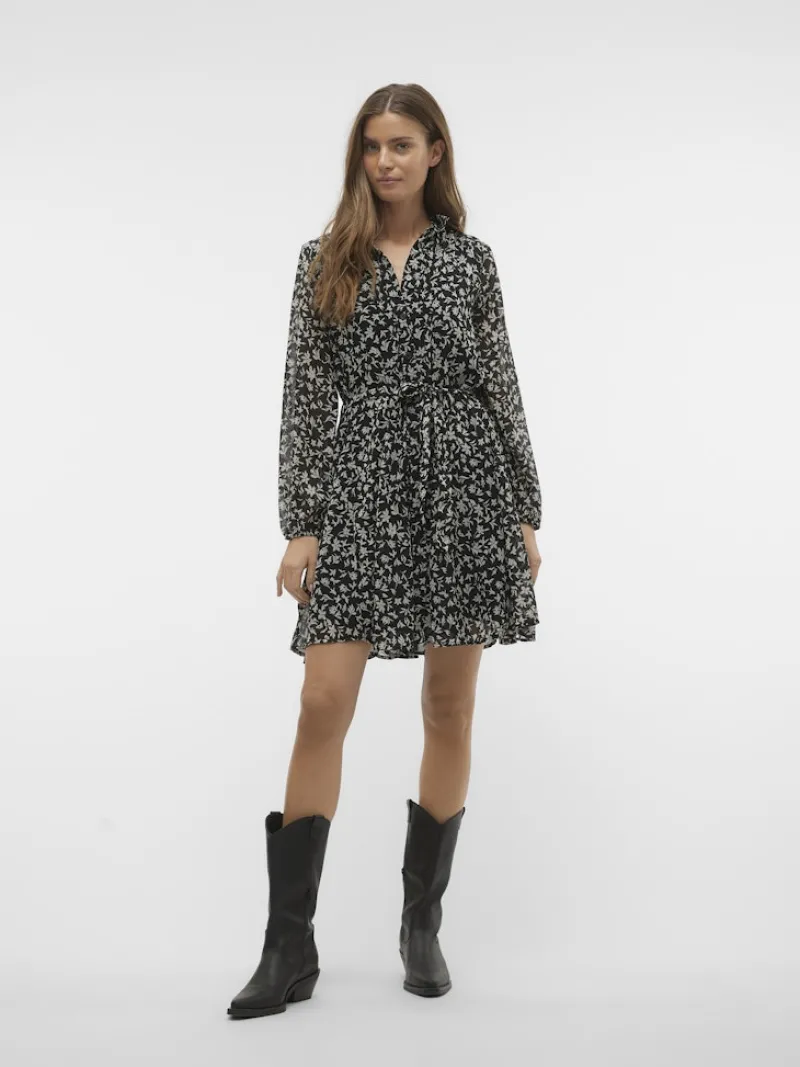 Das VMHOLLY LS VOLUME SHORT DRESS WVN GA ist äußerst pflegeleicht. Du kannst es bei 30°C in der Maschine waschen, ohne Bedenken hinsichtlich Einlaufen oder Farbverlust. Bitte vermeide den Trockner und bügle das Kleid bei niedriger Temperatur, um die Qualität zu erhalten.