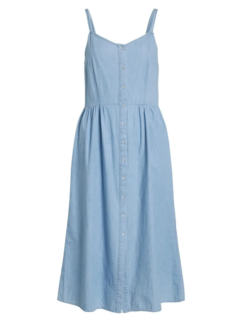 Das VIZIA Strap Midi Denim Dress ist in verschiedenen Größen erhältlich und schmiegt sich perfekt an deine Körperform an. Egal, ob du eine figurbetonte oder eine lockere Passform bevorzugst – dieses Kleid bietet dir stets höchsten Tragekomfort.